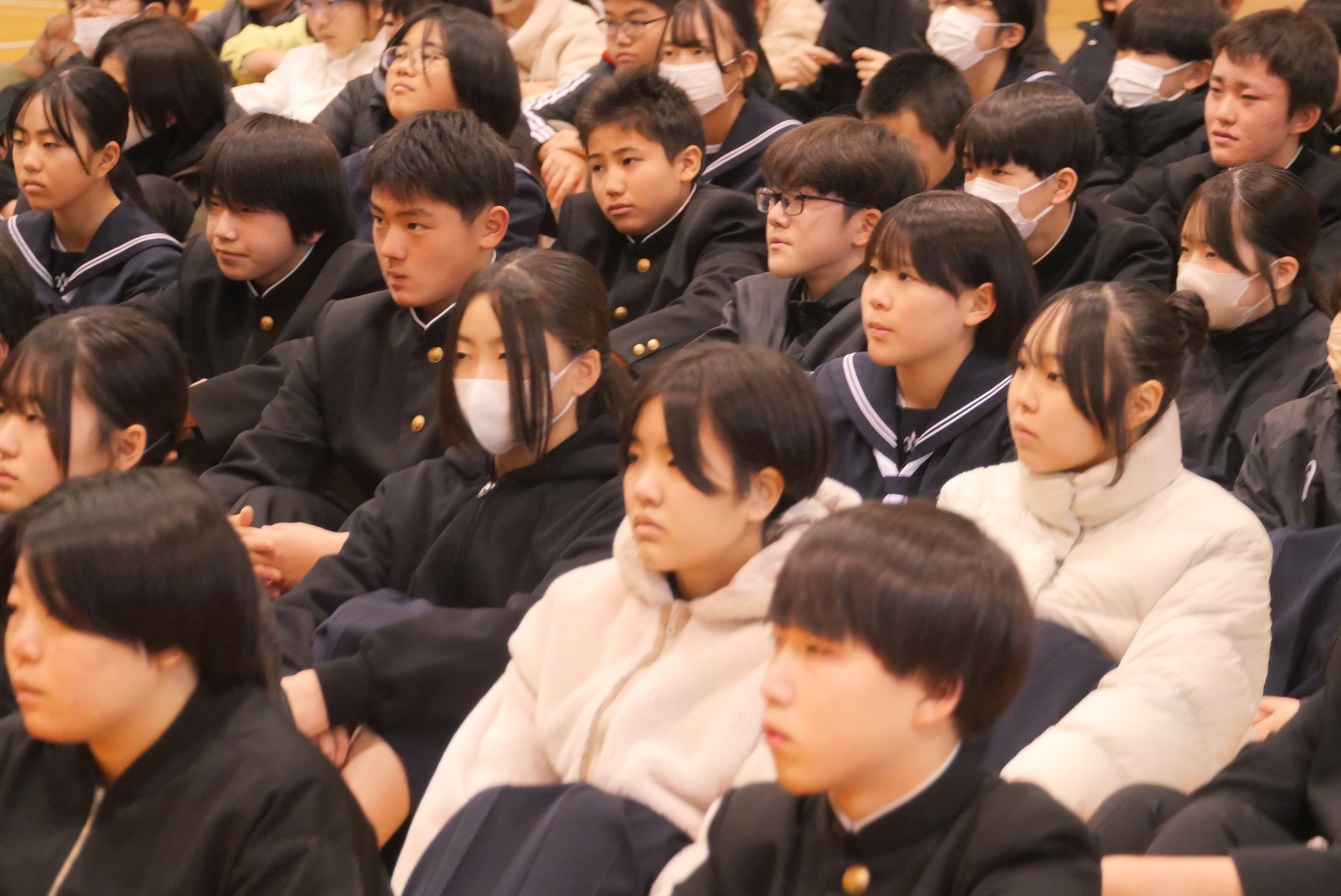 中学生へのお話のテーマは「ブラッシュアップ」です。自分を磨き上げることで、将来いろいろな可能性が広がることをお話しされました。どこで、どんな経験が生かされるかは分からない。いろんなことに興味をもって、積極的に取り組んでほしいという内容です。小学生に向けては、マッコウクジラの「よどちゃん」の話題を出し、ちょっとした「?」から考えを広げていってほしいと、疑問に思うことが学びのスタートになることを伝えてくださいました。